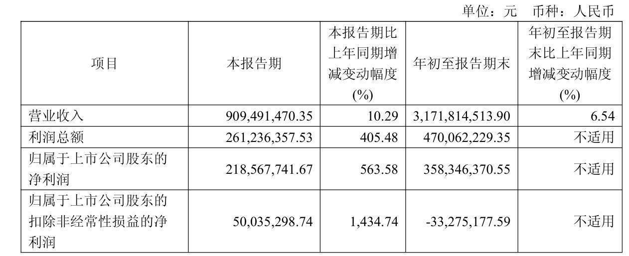 2025年前三季度,公司营业收入为31.72亿元,同比增长6.54%;归母净利润为3.58亿元,同比增长267.43%;扣非归母净利润为-3327.52万元,同比增长70.32%。